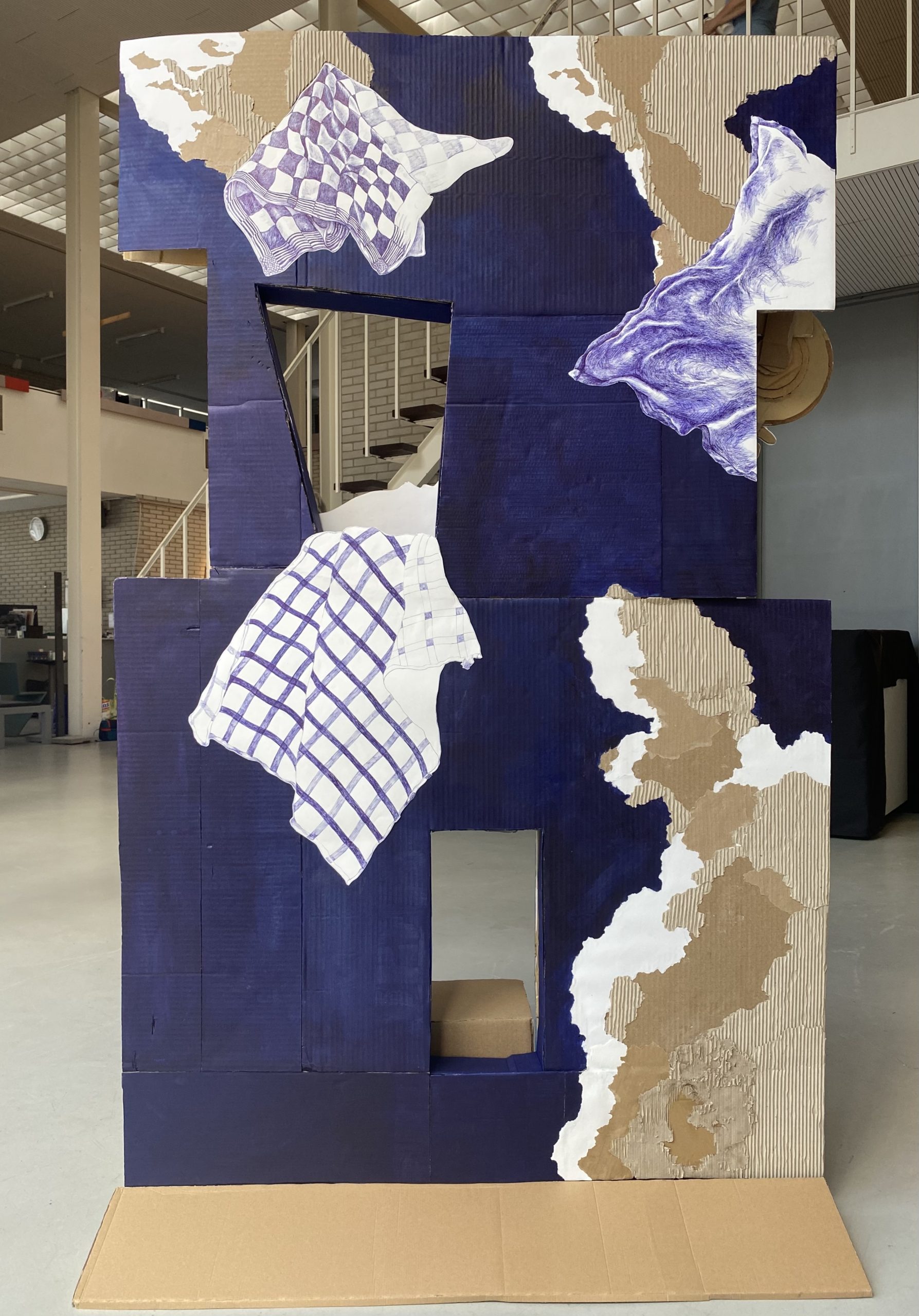 cardboard, paper, blue ballpoint ink, acrylic